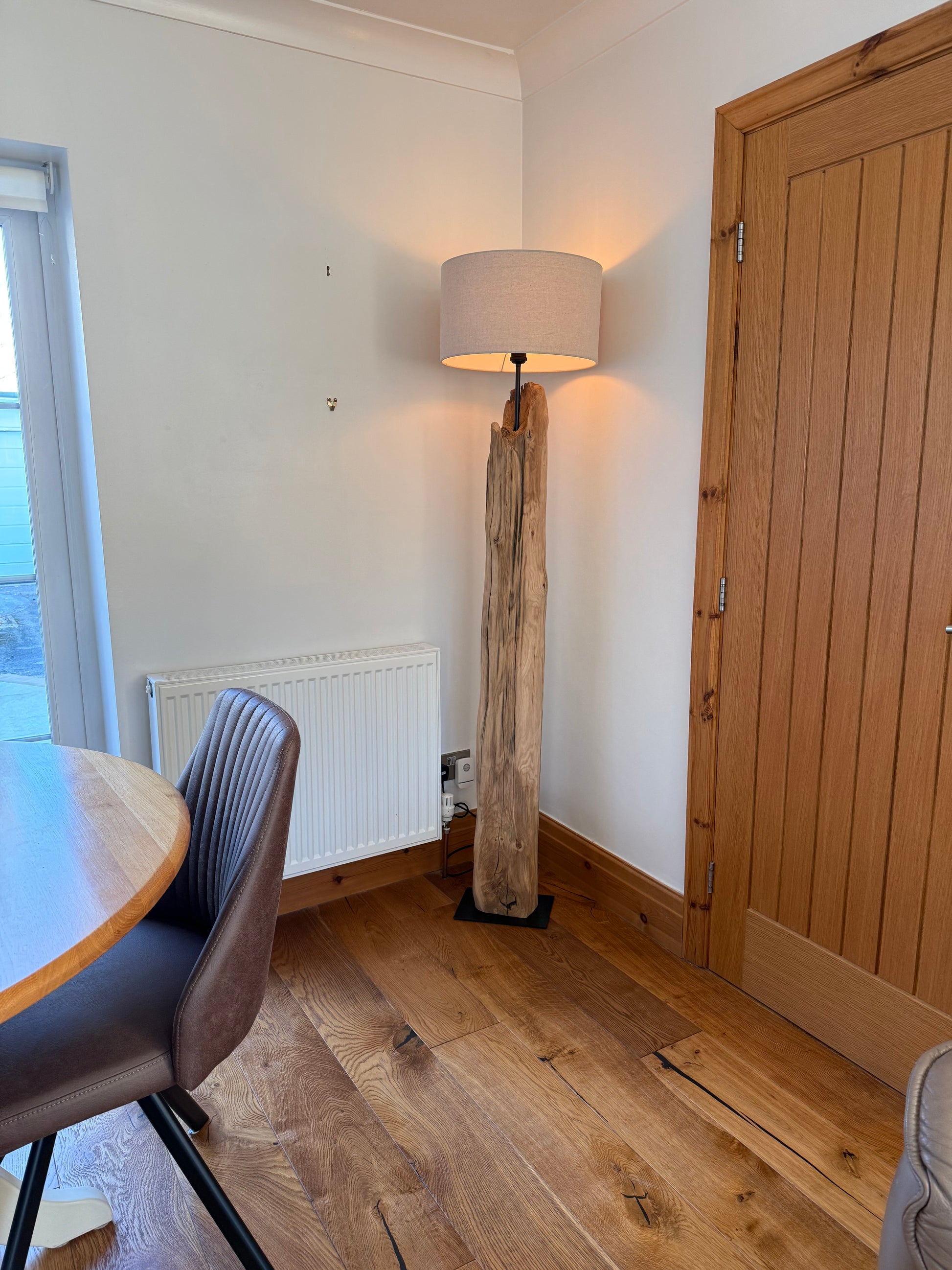 These lamps are crafted from solid sleepers, selected for their grain, tone, and natural character. Each piece is carefully cleaned, shaped, stabilised, and finished by hand before being transformed into a functional sculptural light.